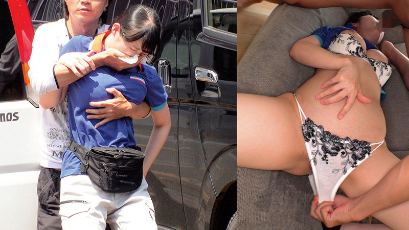 軽バン内の荷物の仕分け、ハリのある尻、ポロシャツ上からでもわかる巨乳